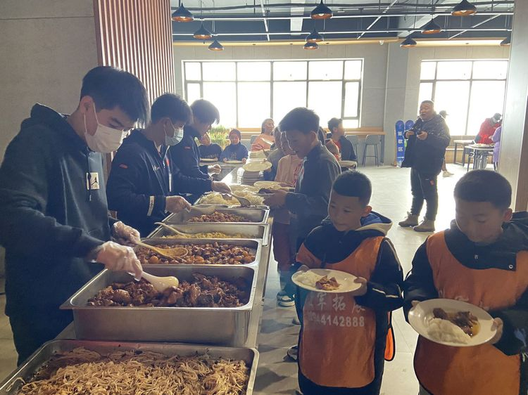 忙碌了一上午,学生们迎来了丰盛的午餐。在温暖的餐厅里,他们围坐在一起,分享着彼此的滑雪经历和感受。美食与欢声笑语交织在一起,营造出温馨的氛围。