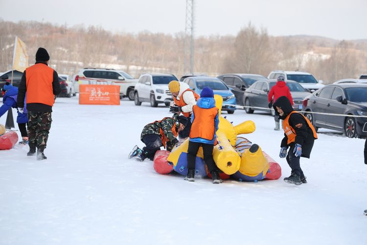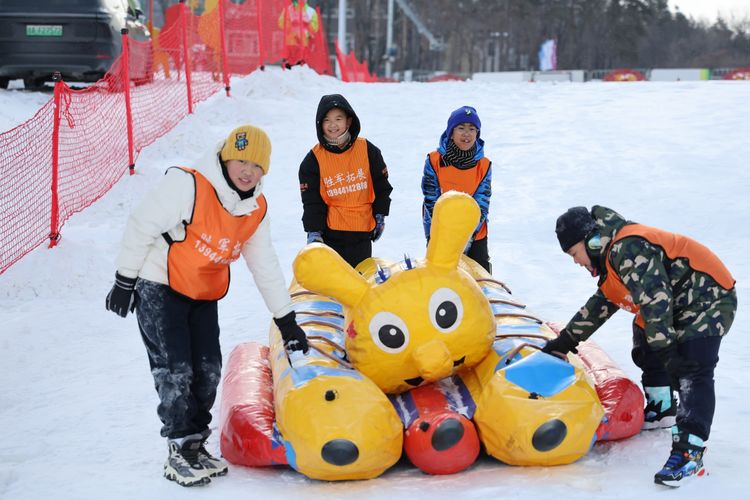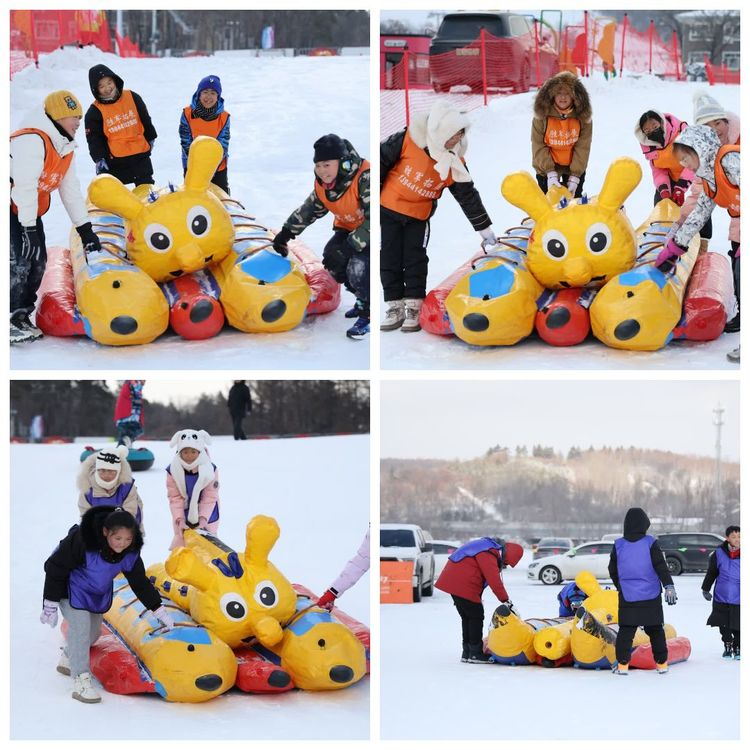 随后,学生们进行了“雪地毛毛虫”活动。在洁白的场地上,学生们犹如一条条生动的彩虹在白雪世界中舞动,眼神中闪烁着期待与兴奋。他们紧握着毛毛虫的操控手柄,默契地协同动作,使毛毛虫在雪地中稳稳前行。冰冷的雪地与温暖的热情形成鲜明对比,学生们脸颊泛红,洋溢着青春的活力。